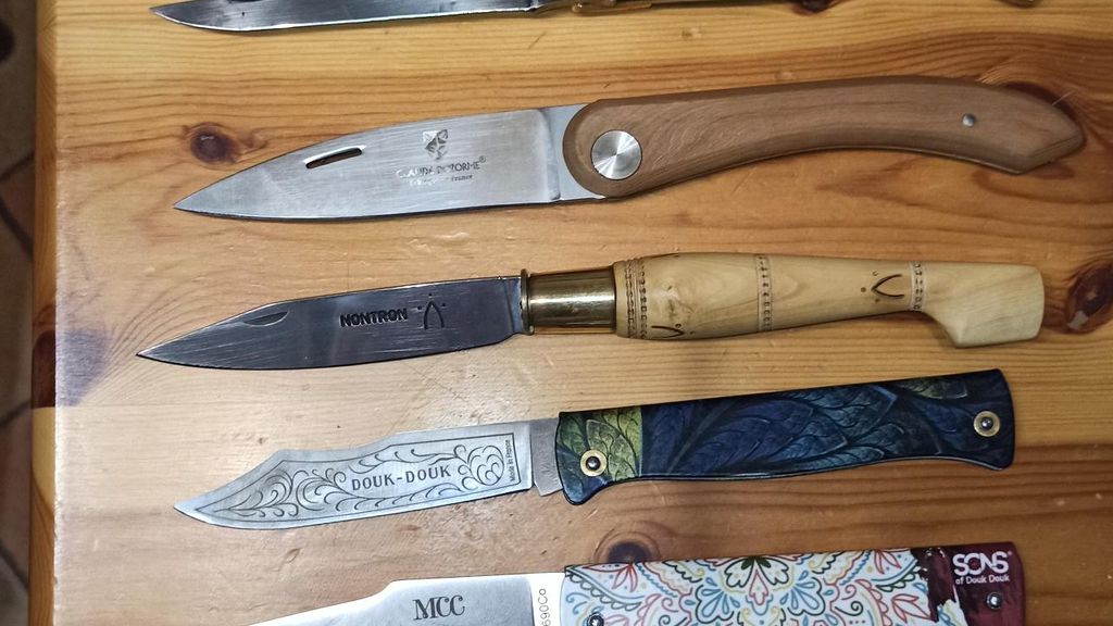Je vous passe les couteaux de cuisine et les Mora pour tailler du bois, c'est pas très intéressant.