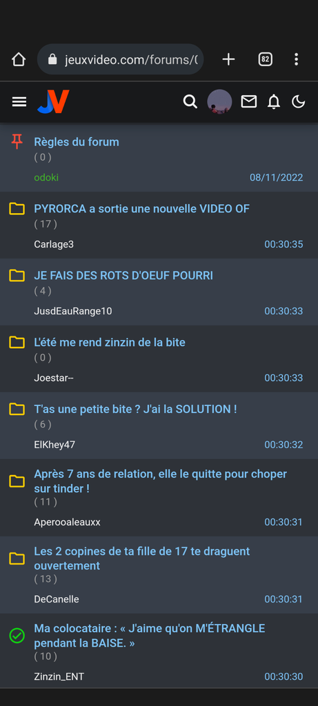 Sauf que ça date d'hier soir ce screen et les topics de JVC n'ont absolument rien à envier à Onche.