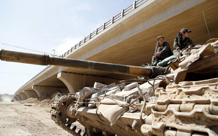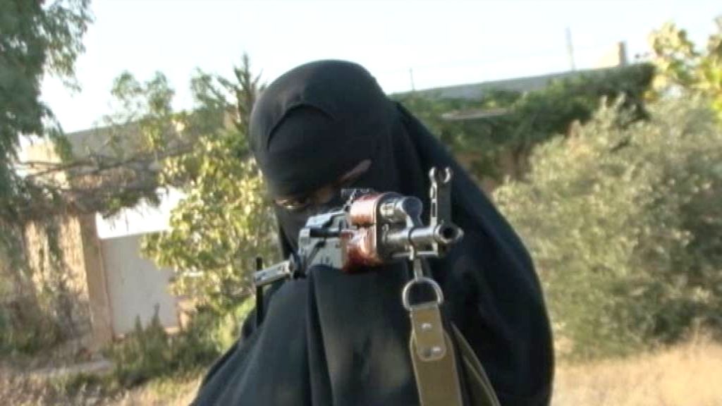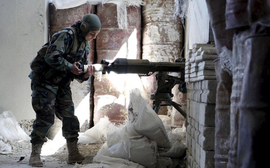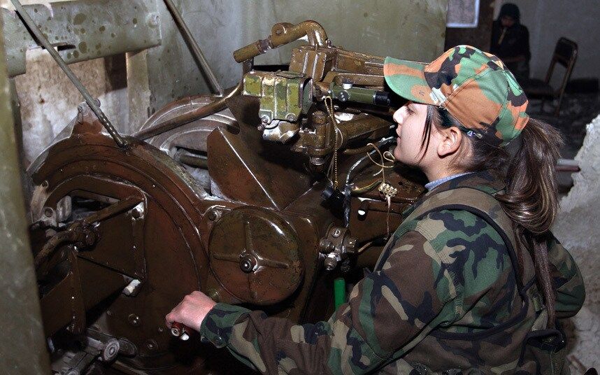 Syrian female fighters take position by the demarcation lines in East Ghouta.