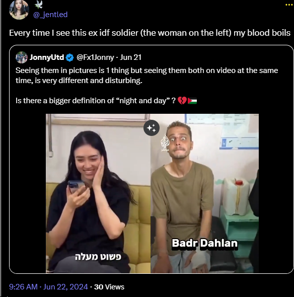 Chaque fois que je vois cet ancien soldat de Tsahal (la femme à gauche), mon sang bout