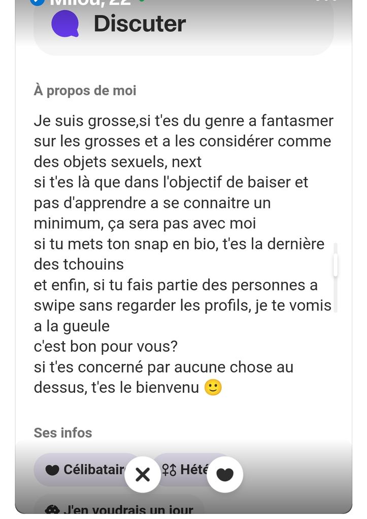 Et ouais, j'ai horreur des relations de merde où la meuf est potentiellement une catin, mais la réalité c'est que je trouve pas de femmes de mon âge qui n'ont pas au moins 7-8 mecs à leur actifs et la majorité enchaine les plans tinder