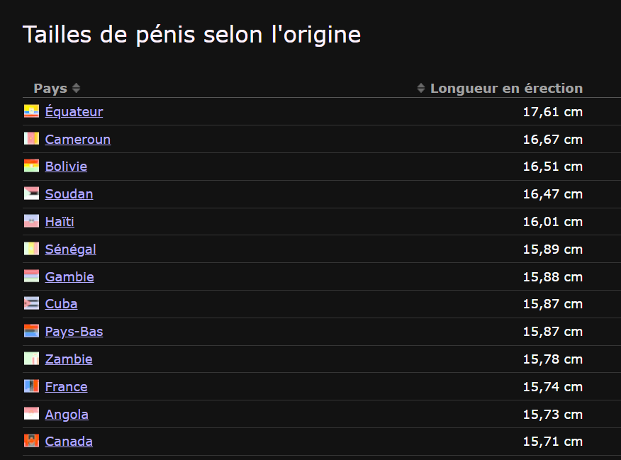 J'ai vu des stats de taille de bite par pays et c'est les africains qui arrivaient en tête