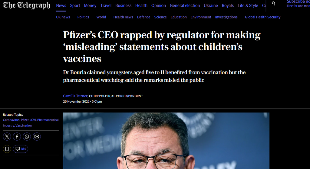 Le Dr Bourla a affirmé que les jeunes âgés de cinq à 11 ans bénéficiaient de la vaccination, mais l'organisme de surveillance pharmaceutique a déclaré que ces remarques avaient induit le public en erreur.
