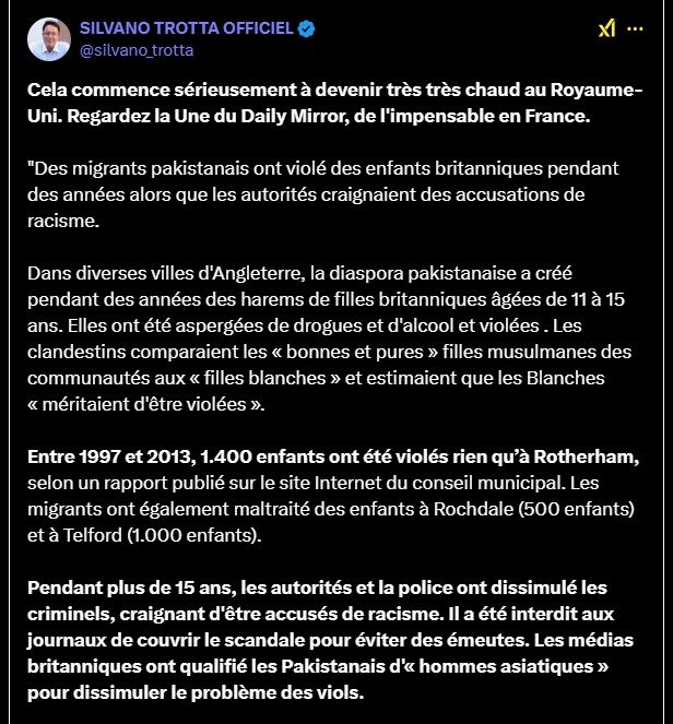 "Des migrants pakistanais ont violé des enfants britanniques pendant des années alors que les autorités craignaient des accusations de racisme.