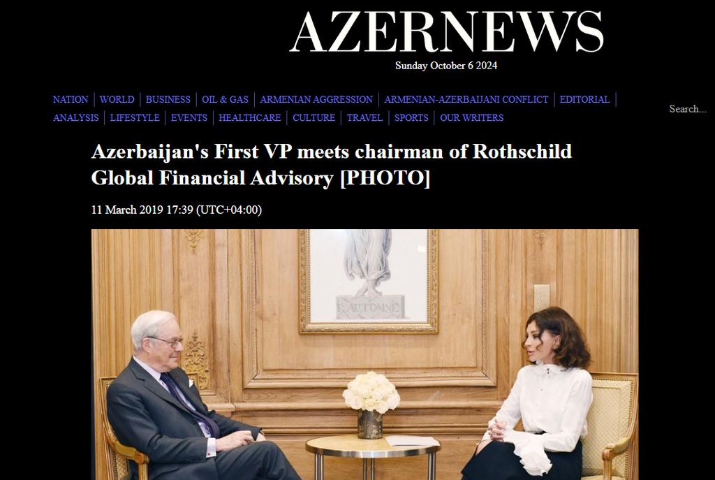 Mehriban Aliyeva a invité Rothschild à se rendre en Azerbaïdjan.