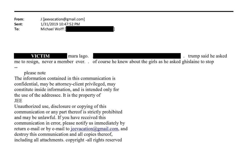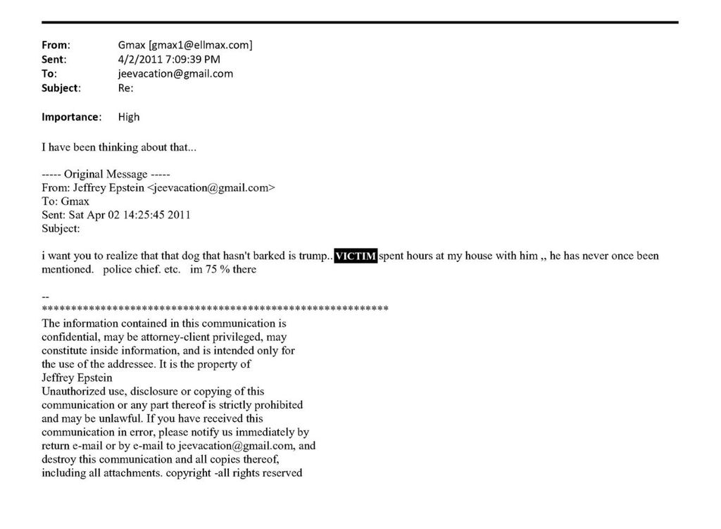 'Je veux que vous réalisiez que ce chien qui n'a pas aboyé est Trump. [La victime] a passé des heures chez moi avec lui… il n'a jamais été mentionné une seule fois.' - Jeffrey Epstein à Ghislaine Maxwell