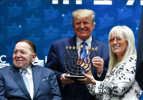 « Miriam et Sheldon Adelson sont venus à la Maison Blanche presque plus que quiconque… » faisant référence à Miriam, donatrice de 100 millions de dollars x 2, et à son défunt mari, gérant des casinos Los Vegas Sands.