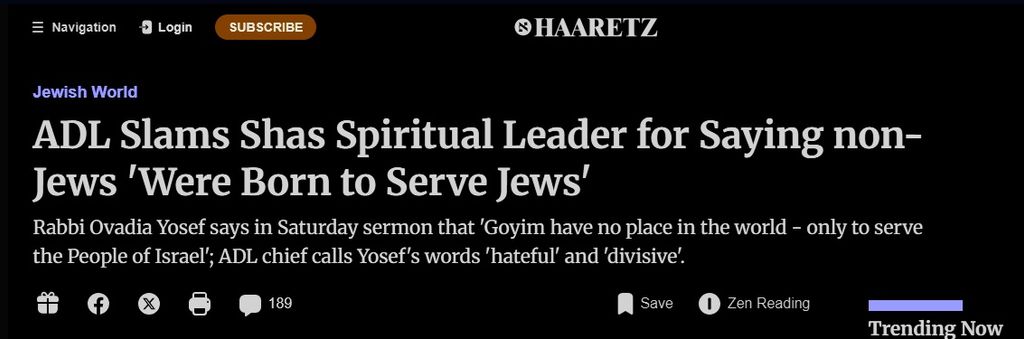 En octobre 2010, il estime que « Les goyims [non juifs] n'ont de place dans le monde que pour servir le peuple d'Israël » Il ajoute que, « avec les gentils, ce sera comme toute personne, ils doivent mourir, mais [Yahvé] leur donnera longévité. Pourquoi ? Imaginez que l'âne de quelqu'un meurt, ils perdraient leur argent. C'est son servant. C'est pourquoi il a une longue vie, pour bien travailler pour ce juif. »