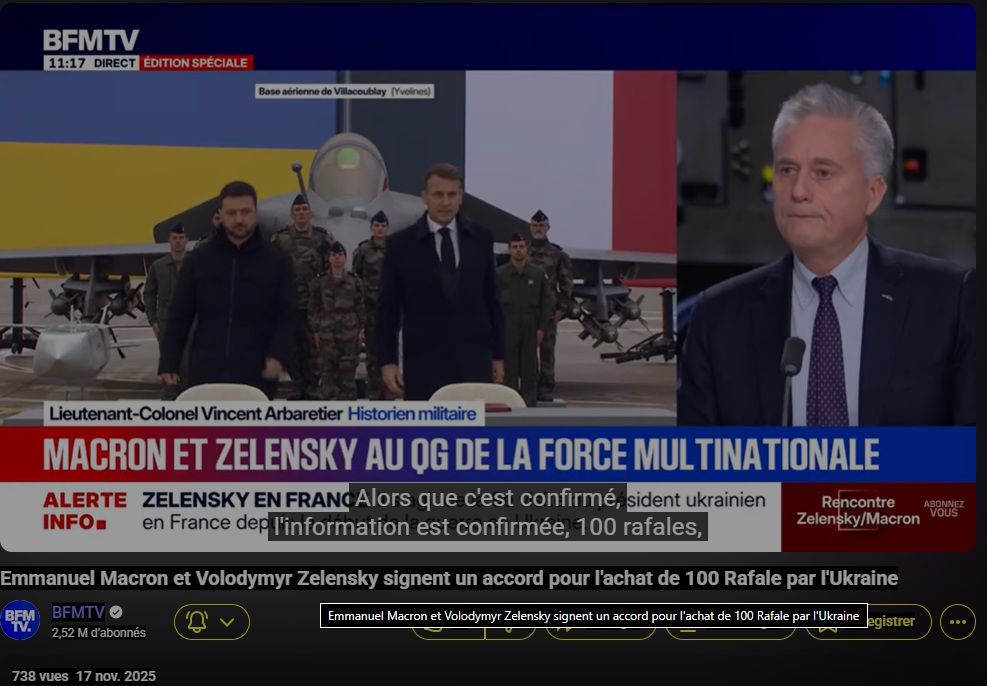 Emmanuel Macron et Volodymyr Zelensky signent un accord pour l'achat de 100 Rafale par l'Ukraine