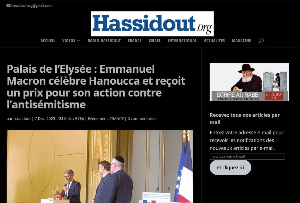 Palais de l’Elysée : Emmanuel Macron célèbre Hanoucca et reçoit un prix pour son action contre l’antisémitisme