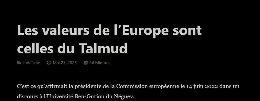 Les valeurs de l’Europe sont celles du Talmud. C’est ce qu’affirmait la présidente de la Commission européenne le 14 juin 2022 dans un discours à l’Université Ben-Gurion du Néguev.