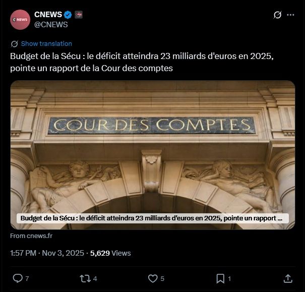 Budget de la Sécu : le déficit atteindra 23 milliards d'euros en 2025, pointe un rapport de la Cour des comptes