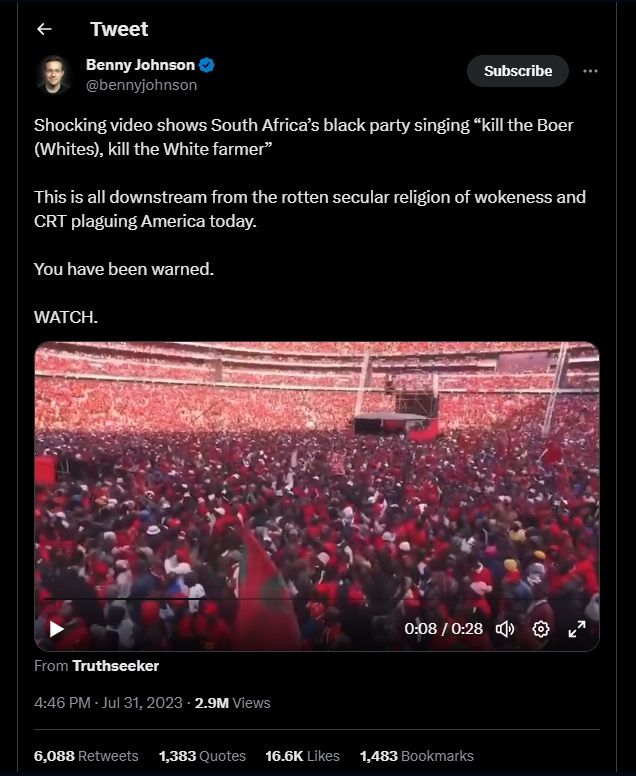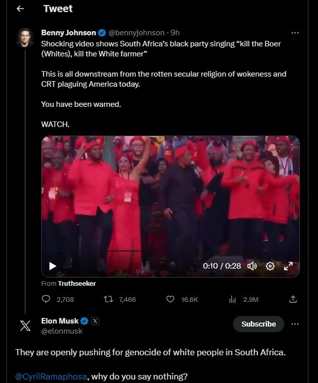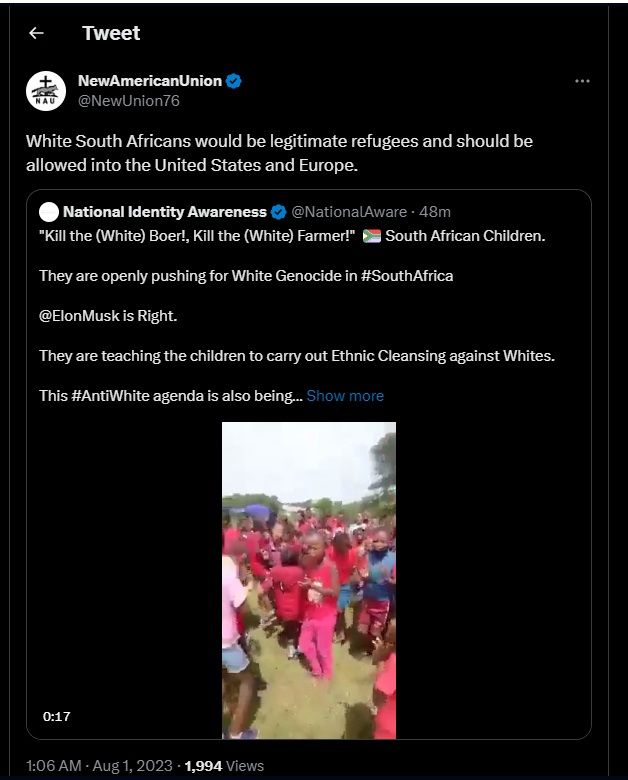 Ils poussent ouvertement au génocide blanc en #Afrique du Sud