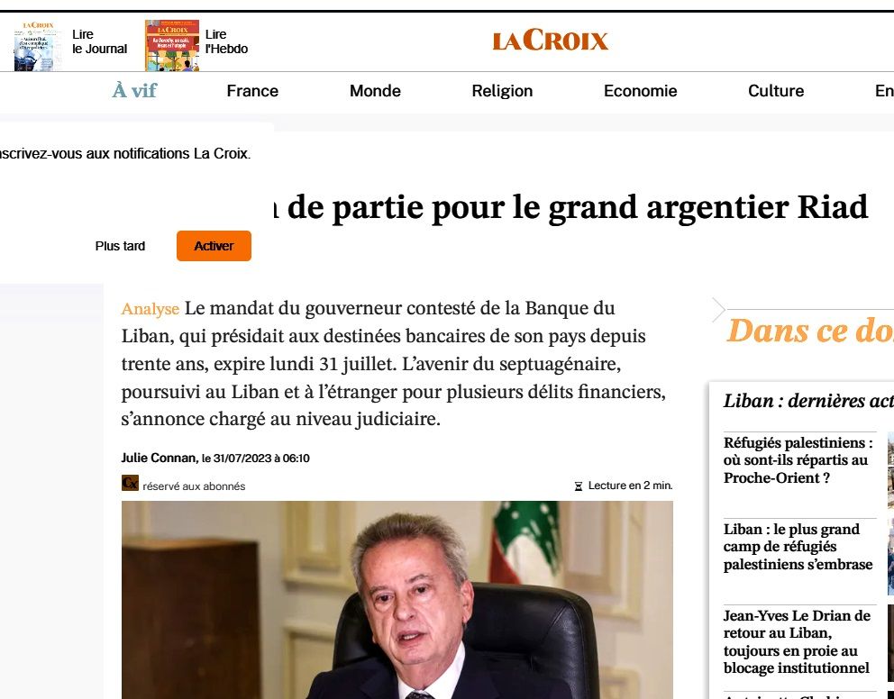 Analyse Le mandat du gouverneur contesté de la Banque du Liban, qui présidait aux destinées bancaires de son pays depuis trente ans, expire lundi 31 juillet. L’avenir du septuagénaire, poursuivi au Liban et à l’étranger pour plusieurs délits financiers, s’annonce chargé au niveau judiciaire.
