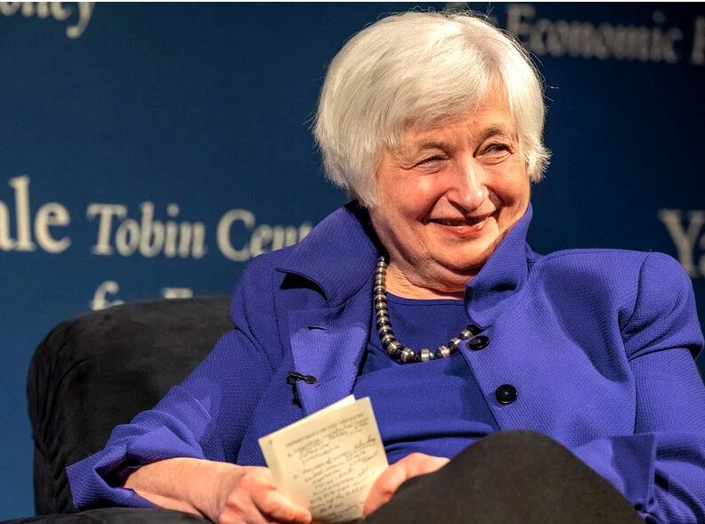 Janet Louise Yellen (née le 13 août 1946) est une économiste juive qui est la 78e secrétaire au Trésor des États-Unis depuis le 26 janvier 2021. Elle a auparavant été la 15e présidente de la Réserve fédérale de 2014 à 2018. Yellen a été membre du Conseil des gouverneurs de la Réserve fédérale de 1994 à 1997 et a été nommée à ce poste par le président Bill Clinton, qui l'a ensuite nommée présidente du Conseil des conseillers économiques de 1997 à 1999. Yellen est née le 13 août 1946 dans une famille d'ascendance juive polonaise à Bay Ridge, Brooklyn, quartier de New York, et y a grandi. Sa mère était Anna Ruth (née Blumenthal ; 1907–1986).