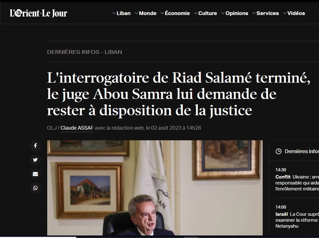 L'interrogatoire de Riad Salamé terminé, le juge Abou Samra lui demande de rester à disposition de la justice