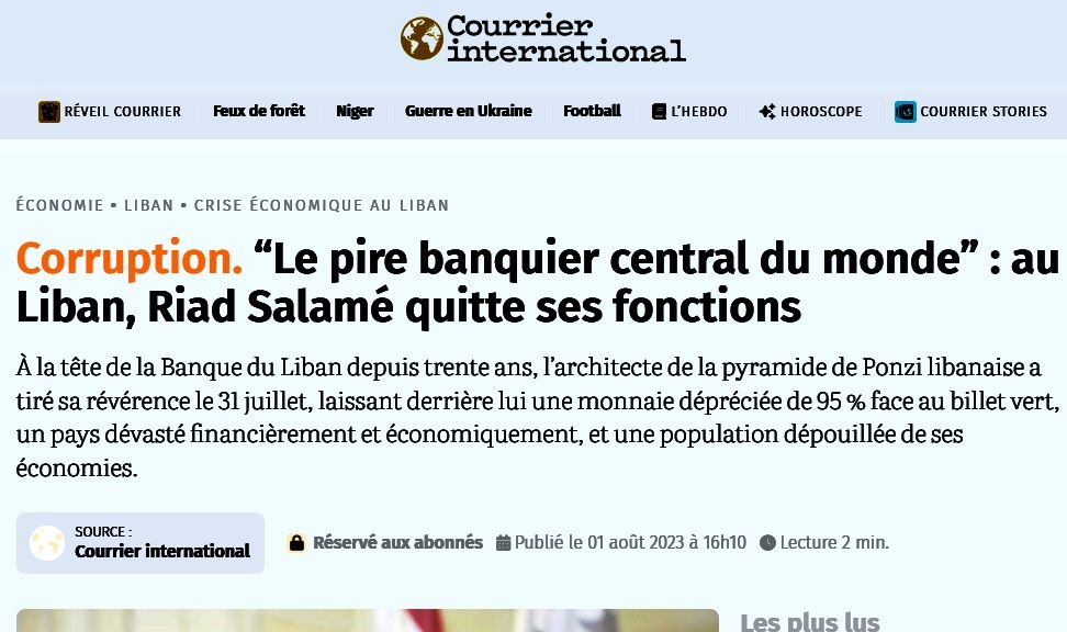 Corruption. “Le pire banquier central du monde” : au Liban, Riad Salamé quitte ses fonctions