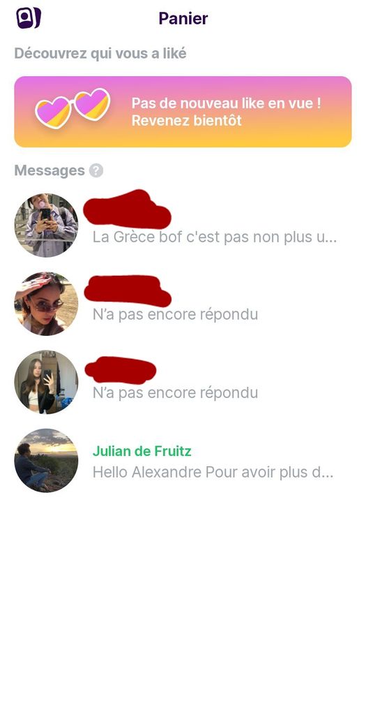 Je précise que dans les 3 cas c'est elles qui m'ont likes, j'ai juste like en retour pour faire match , que j'ai utilisé une VRAI photo de moi , qui est 100% naturelle , aucune retouche