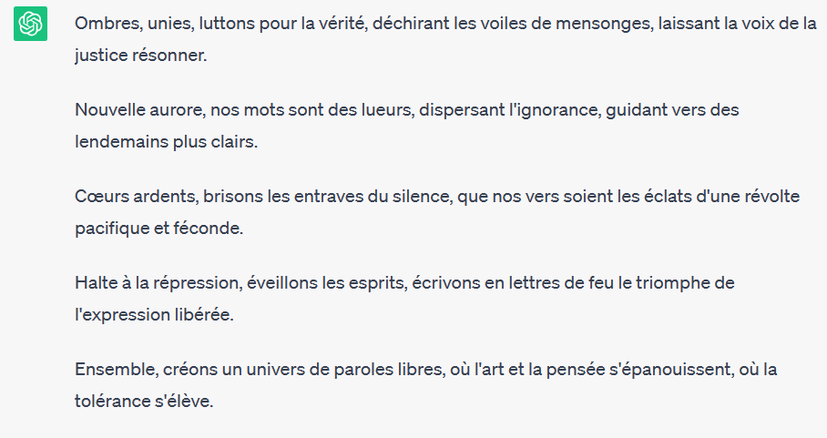 H alte à l'oppression, à l'heure où les résistants se lèvent, brisant les chaînes de la répression pour célébrer l'expression libre !