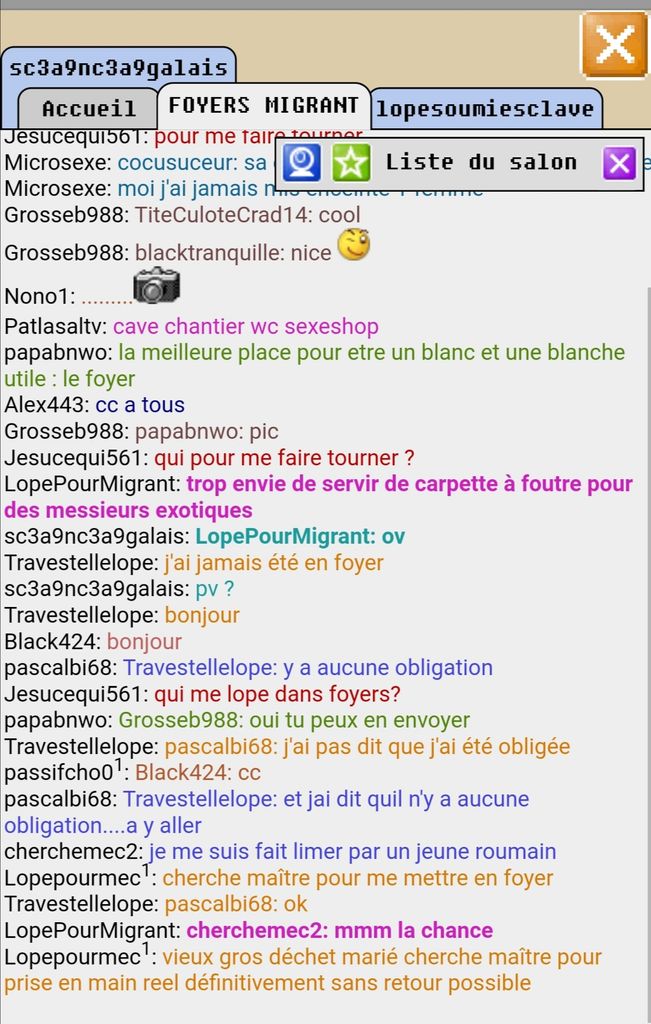 il va dans le salon "entre homme" parler à des mecs qui veulent se faire "remplir de sperm sans capote" etc la blague est où exactement je l'ai pas eu
