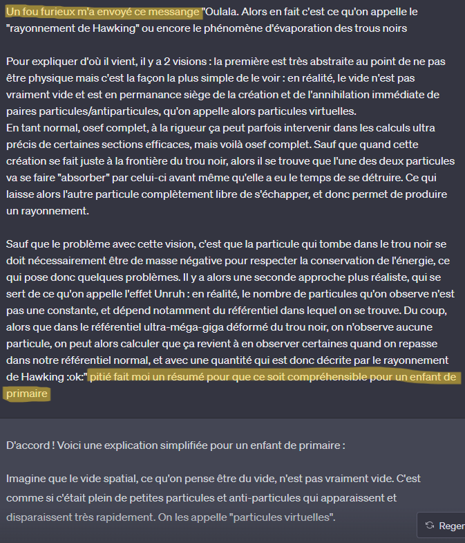 Oulala. Alors en fait c'est ce qu'on appelle le "rayonnement de Hawking" ou encore le phénomène d'évaporation des trous noirs