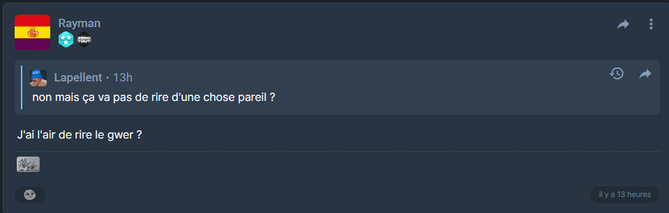 Aujourd'hui ça va, lundi il m'a fait sauter 3 pseudos d'un coup ce fou