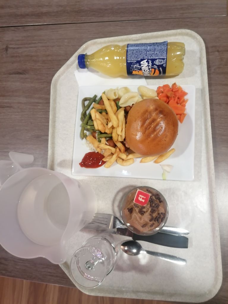 Un bourger avec du baicone et des bons fritents potates carot harico et jaune gazeux puis mousso chocolo MIAM