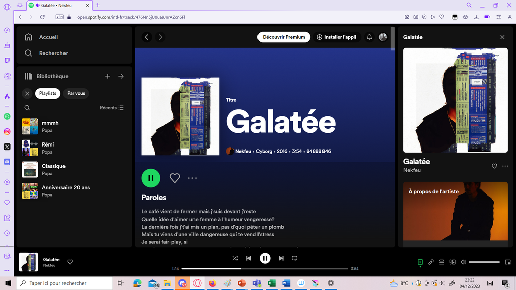 j'aurais aimé dire que je pensais à toi en l'écoutant mais j'ai pas l'impression que tu sois une femme à l'humeur vengeresse