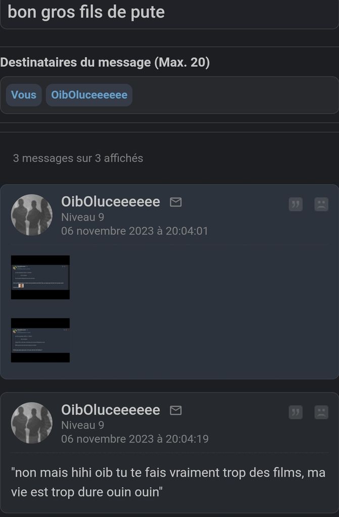Mais en ce moment il ose plus me répondre même quand je le provoque