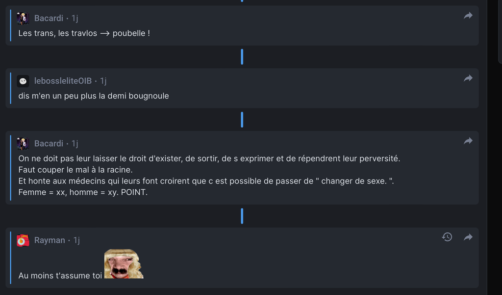 AYAAA CETAIT ENCORE PIRE GENRE ILS NE DOIVENT PAS EXISTER OU S'EXPRIMER "au moins tu assumes"