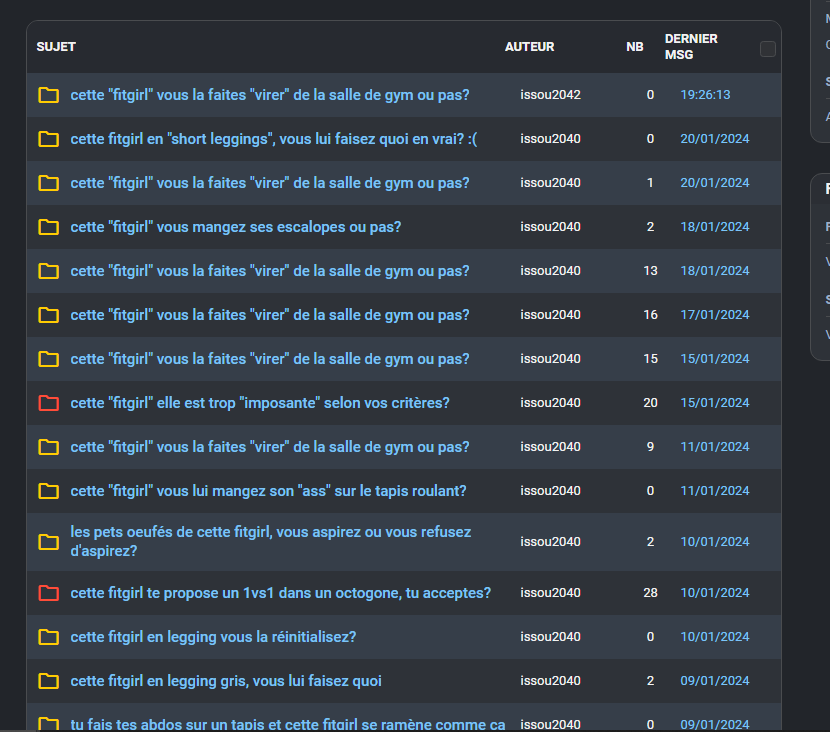 Ah je regarde souvent mais bon entre la boucle racisme, la boucle incel, la boucle politique et la boucle religion...
