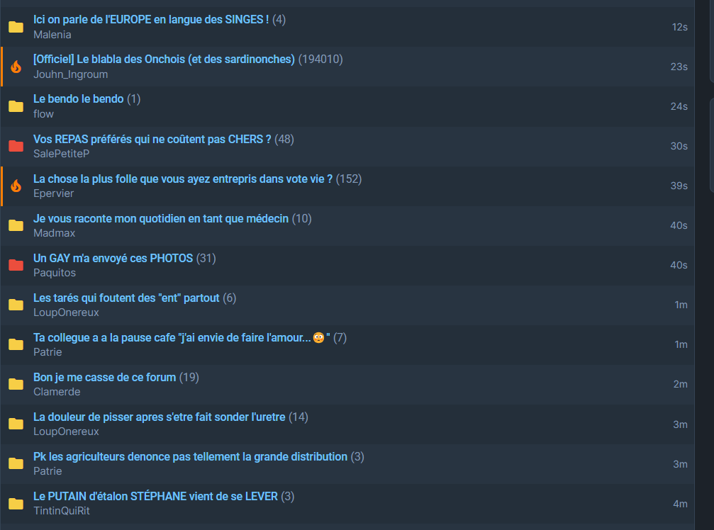 Y'a 1 topic de qualité sur 50 et ces batards nous font chier parce qu'on parle entre nous