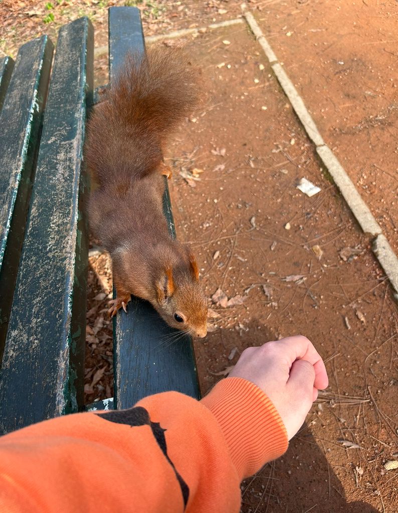 Je me poses tranquille sur un banc, déjà j’ai revu les mésanges puis je sens un truc me toucher le bras je me tourne je vois ça