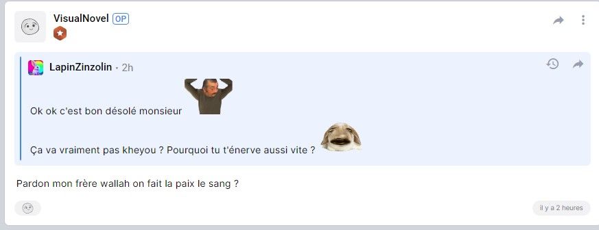 Il faut maintenant répondre aux kheys qui vous aident, pour monter encore + l'énervement du khey complètement brisé et ramener d'autres personnes