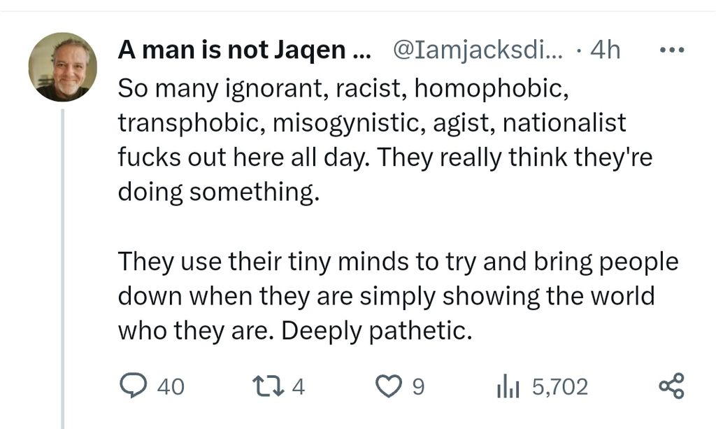 Les golems devaient être des bons toutous covidistes LE TEMPS de l'escroquerie cobide, lui c'est typiquement le genre a péter un cable contre le gouv parcequ'il ne fait plus rien face au virus imaginaire
