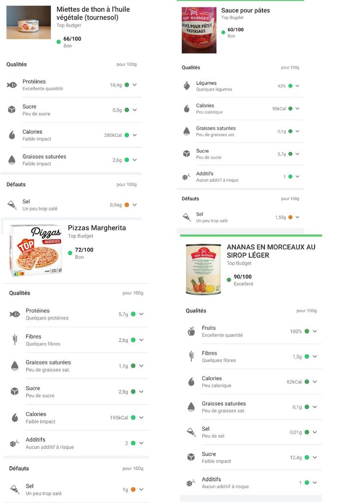 Je viens de faire un Yuka sur tous les produits présentés, ils sont tous en vert