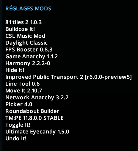 Concernant tes mods, tu as déjà de bon mods essentiels, surtout "Move it" qui est un des plus utile ahi. Sinon la je suis au boulot, j'ai pas ma liste de mods sous le coude donc je peut pas te dire pour les autres mods important.