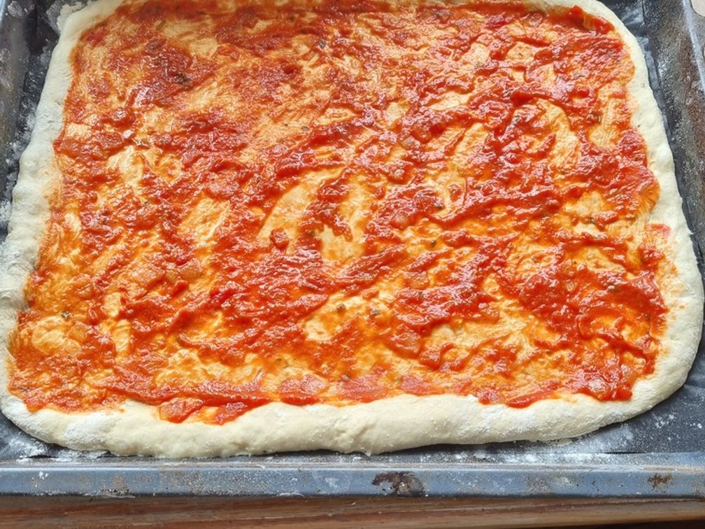 Tartinez avec une sauce tomate interdite, ou faites la vous même. j'ai essayé avec de la pulpe de tomate c'est de la merde ça contient trop d'eau.