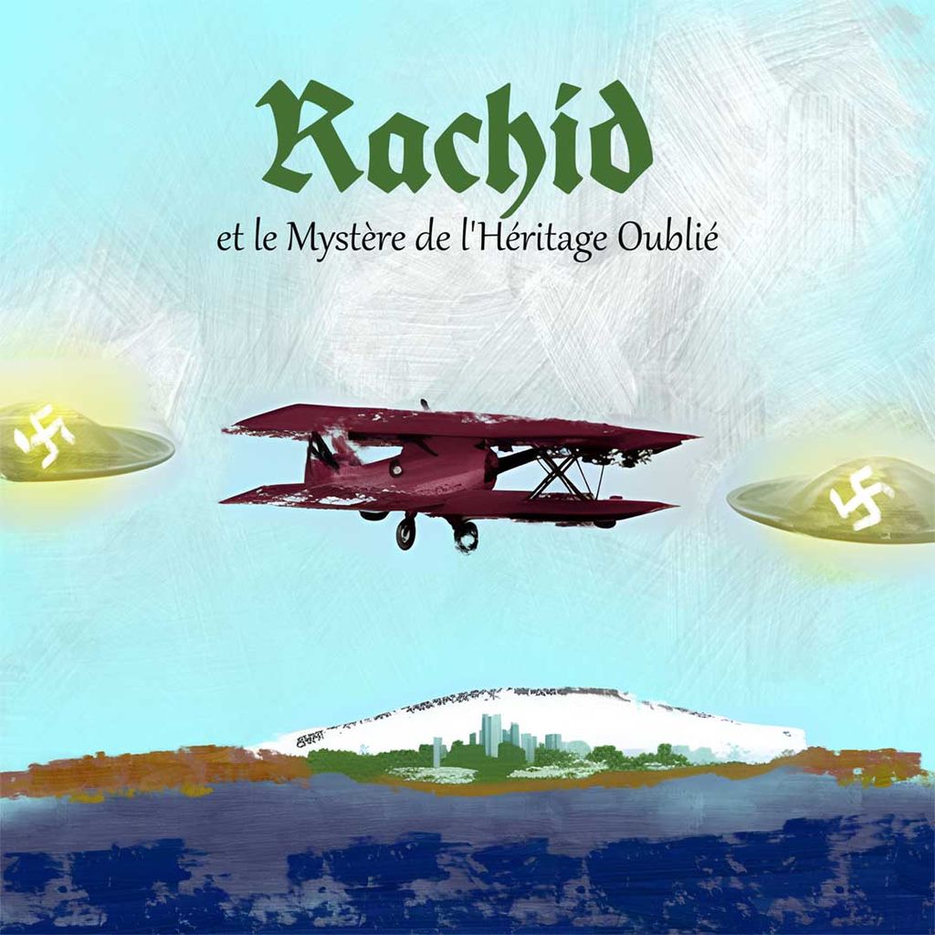 Il ouvrit ensuite une porte dérobée menant à une arrière-salle. Il conduisit le petit Rachid dans la réserve où se tenait un majestueux avion biplan, avec une grande aile au-dessus de l'autre, et avec une hélice à son nez. Les yeux du petit arabe brillèrent en voyant l'engin. Sur le flanc, était maladroitement peint "MOMO".