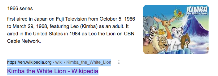 D'ailleurs entre 1966 en 1994 le public a oublier le roi Leo. Et pour l'article wikipédia , il ne mentionne ni la chaine et les dates de diffusion. Mais mea culpa , je pensais pas que les américains ont laisser diffuser un anime japonais en plein milieu des années 60