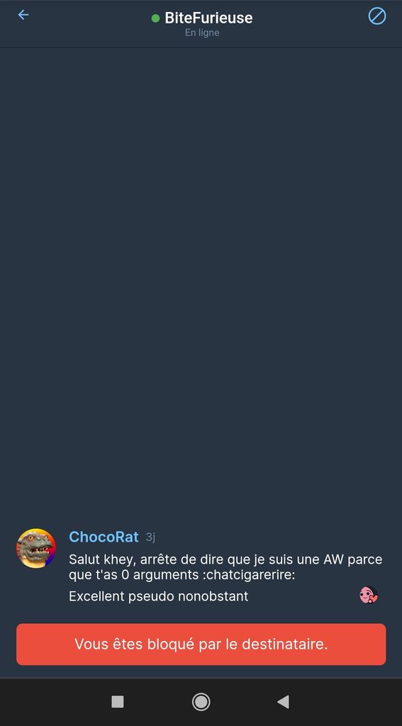 Du coup j'envoie un mp et il me bloque direct comme une tarlouze
