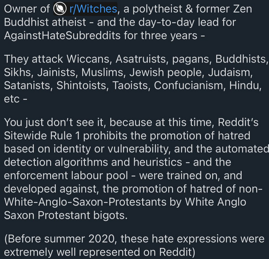 Entre les posts de zoophiles, de tarés déshumanisent voire veulent tuer une catégorie de la population car pas assez woke, les zoophiles, les pédo, les fragiles qui pleurent parce qu'un tel ne porte pas le masque, etc... c'est vraiment une déchetterie, reddit c'est vraiment un dinguerie absolue.
