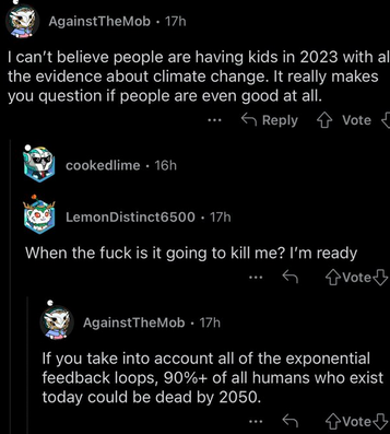 Faire des gosses dans le contexte du changement climatique = être une mauvaise personne.