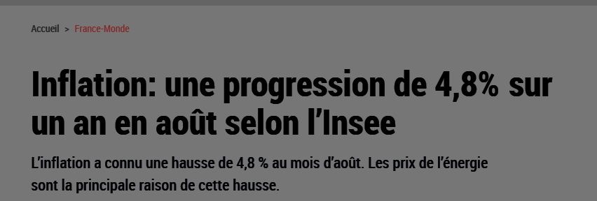 L’inflation a connu une hausse de 4,8 % au mois d’août. Les prix de l’énergie sont la principale raison de cette hausse.