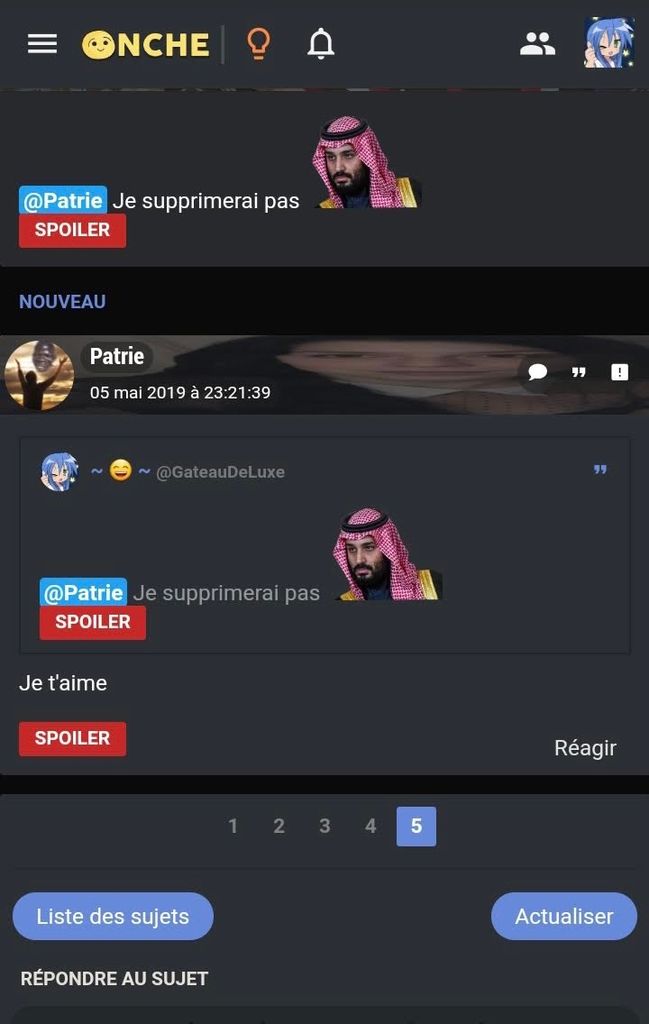 il y en avait un, Takah ou Zerocks, je sais plus vraiment, qui avait demandé de développer une extension pour ne plus voir les réactions car apparemment j’en mettais trop