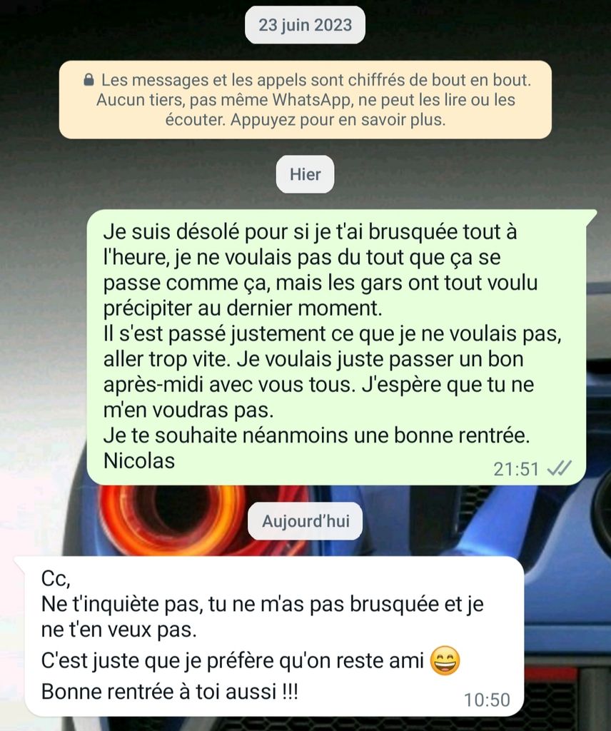 Comme je m'y attendais, elle me ressort le famoso "Je préfère qu'on reste amis", et me souhaite aussi une bonne rentrée.
