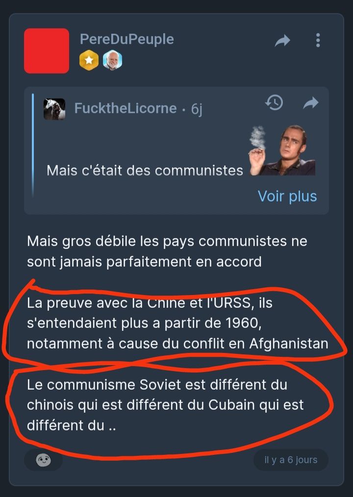 Tu parle bien du communisme chinois de l'époque puisque tu parle des relations entre l'URSS communiste et la Chine communiste