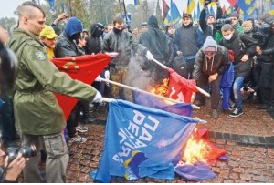 Petro Simonenko. A titre personnel, je suis persuadé que sans relations mutuellement avantageuses avec la Russie, l’Ukraine n’a pas d’avenir. Ce sentiment est conforté par l’examen de la situation en Bulgarie en Roumanie, dans les Balkans, mais aussi en Grèce au Portugal ou en Espagne qui ont choisi l’UE. Avant la crise, le PCU avait demandé qu’un diagnostic soit réalisé sur les conséquences des deux choix aussi bien sur le plan économique que social. Ce qu’aucun gouvernement n’a fait. Le PCU a aussi proposé d’organiser un référendum afin que le peuple choisisse la voie à suivre. J’ai personnellement rencontré plusieurs commissaires européens pour leur signifier que si l’on n’organisait pas une telle consultation cela déboucherait sur un bain de sang. Mais l’opposition pro-UE, a saisi la justice afin d’interdire le processus référendaire.