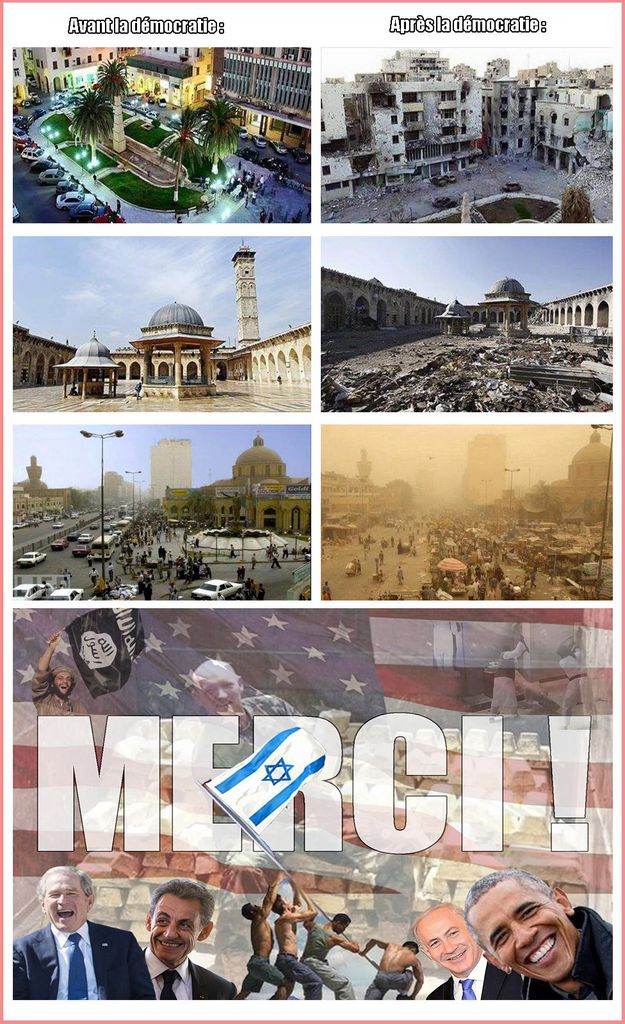 Alors qu'ils ont détruit le monde arabe juste pour avoir plus de pétrole pour leurs bagnoles de merde qui sont juste indispensables vu comment leurs villes sont mal foutues à cause de l'ultra libéralisme
