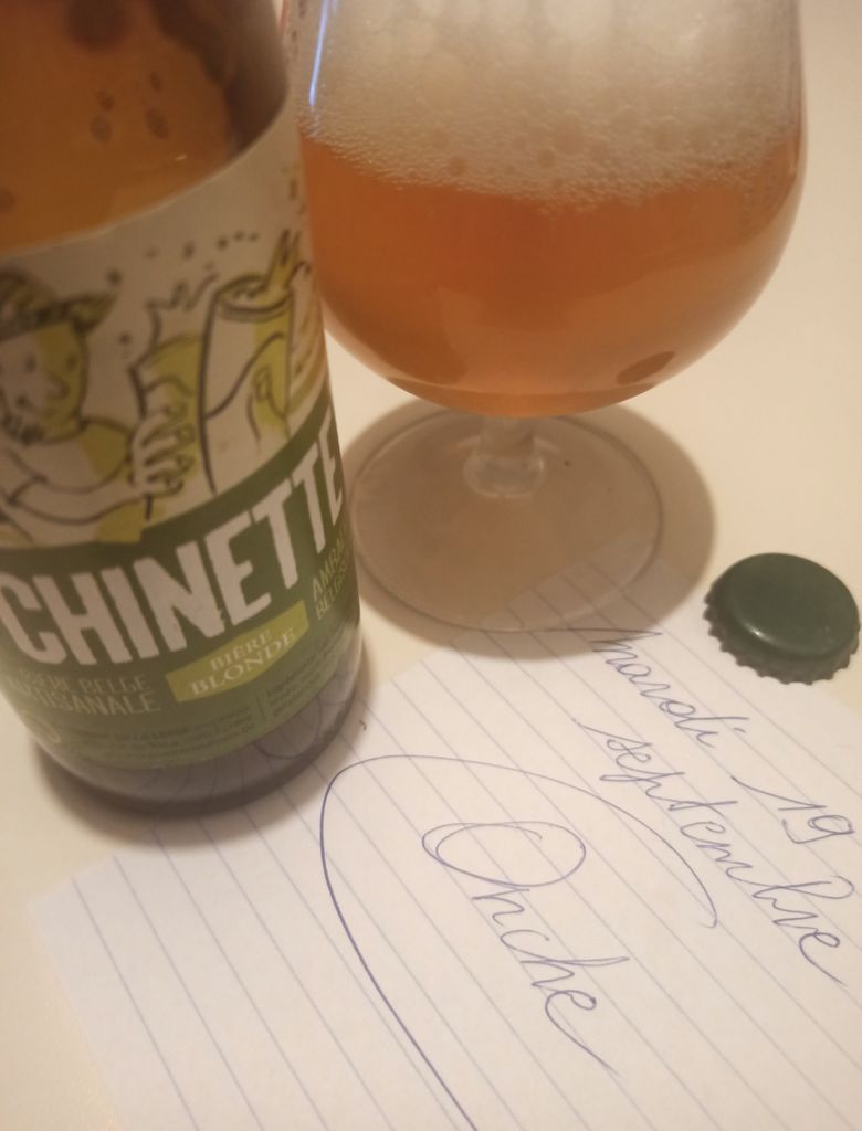 Bière ambrée, 7°, c' est pas mal, pareil que la Chinette, bonne amertume prononcée mais pas trop longt.